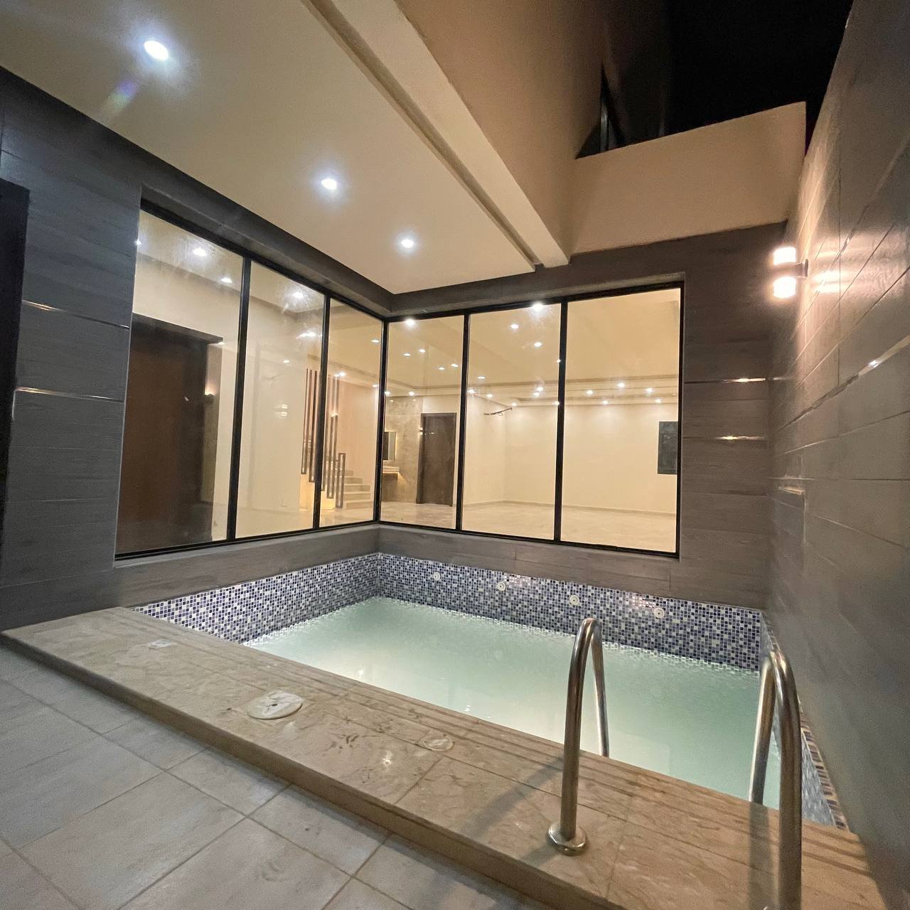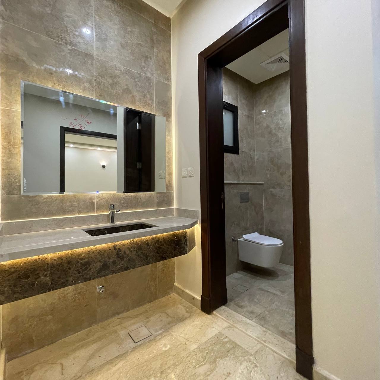 This residence features 10 rooms, including 7 bedrooms and 7 bathrooms. The layout includes 3 spacious living rooms, a well-equipped kitchen, and a dedicated dining area. Additionally, there is a private majlis for men and another designated for women for social occasions. The property is equipped with a laundry room or maid's room, a driver's room, upper and ground floor water tanks, separate air conditioning units, ample parking spaces, and an elevator for added convenience. Furthermore, it includes a swimming pool, water heater installation, and central vacuum system.